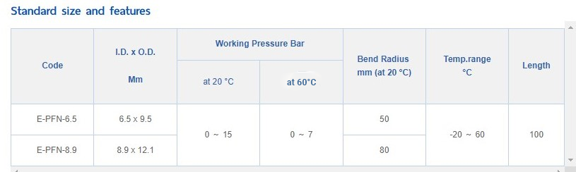 • Tính linh hoạt: Do cấu trúc nhiều lớp, so với ống một lớp nylon. E-PFN có tính linh hoạt cao hơn nên có khả năng chống gấp khúc.